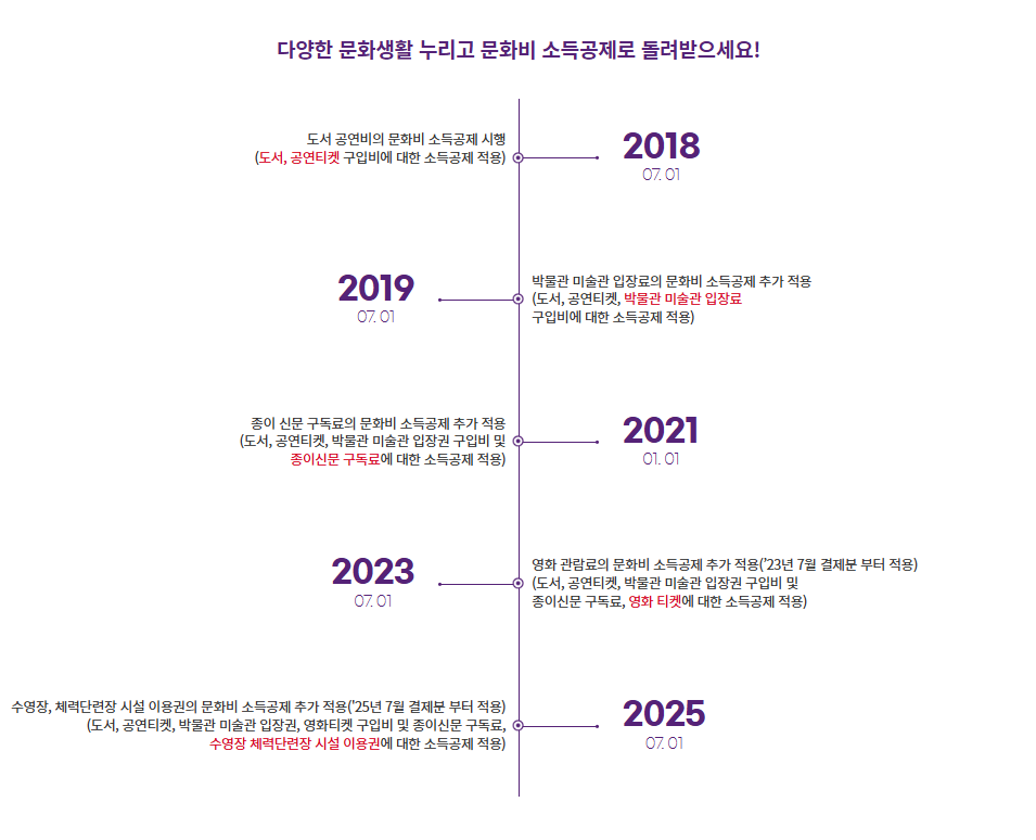 기존의 ‘문화비 소득공제’는 주로 도서, 공연, 박물관, 영화, 신문 등 문화·예술 분야에 국한되어 있었습니다.